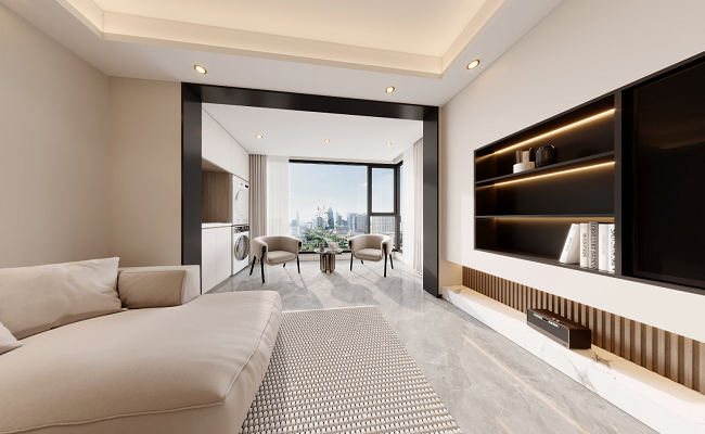 一進門,就是一組大面積儲物柜,隨手就能換上舒適的鞋子,旁邊立著一面全身鏡,出門前整理衣領、檢查狀態,儀式感拉滿。 從換鞋、整理狀態到收納物品,整條動線順著生活習慣自然延伸,沒有一絲卡頓,讓 進門卸甲、出門從容 成為日常,這也是屋主口中“用起來最省心”的設計。