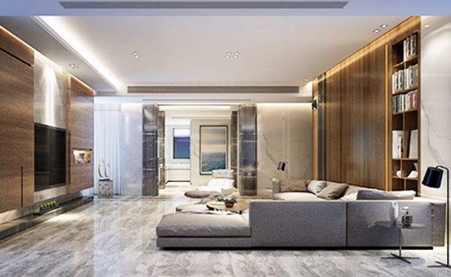 業主一家4口,要求所有房間誰都要有采光,主臥借助陽臺的光照進來,開放式廚房和陽臺緊挨,我們用玻璃隔斷阻礙油煙的味道。衛生間做了干濕分區,洗手臺外置,這樣一家人洗漱也不會擁擠。洗手臺前面坐了玻璃磚這樣光線就可以透過來,不會是一個暗的空間??筒蛷d整體一個空間,客廳是不需要電視,寫作業可以在餐桌,父母坐在沙發上也是可以看到孩子的行動,安全和全家活動氛圍拉升。