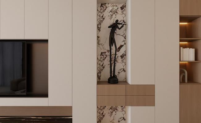 整體設(shè)計(jì)去客廳化,業(yè)主有三只貓,不要布藝皮質(zhì)家具,收藏很多樂(lè)高和盲盒,需要儲(chǔ)物多,希望空間開(kāi)闊