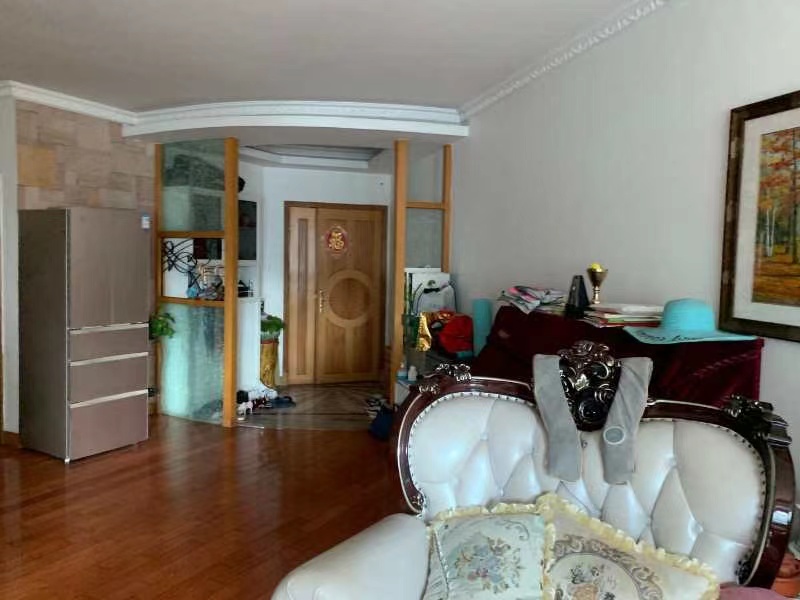 在客廳進門處巧妙的加上了玄關屏風,整體的材質也和整體的風格相得益彰,選用了金屬拉絲不銹鋼材質夾亞克力玻璃做拉斯處理。