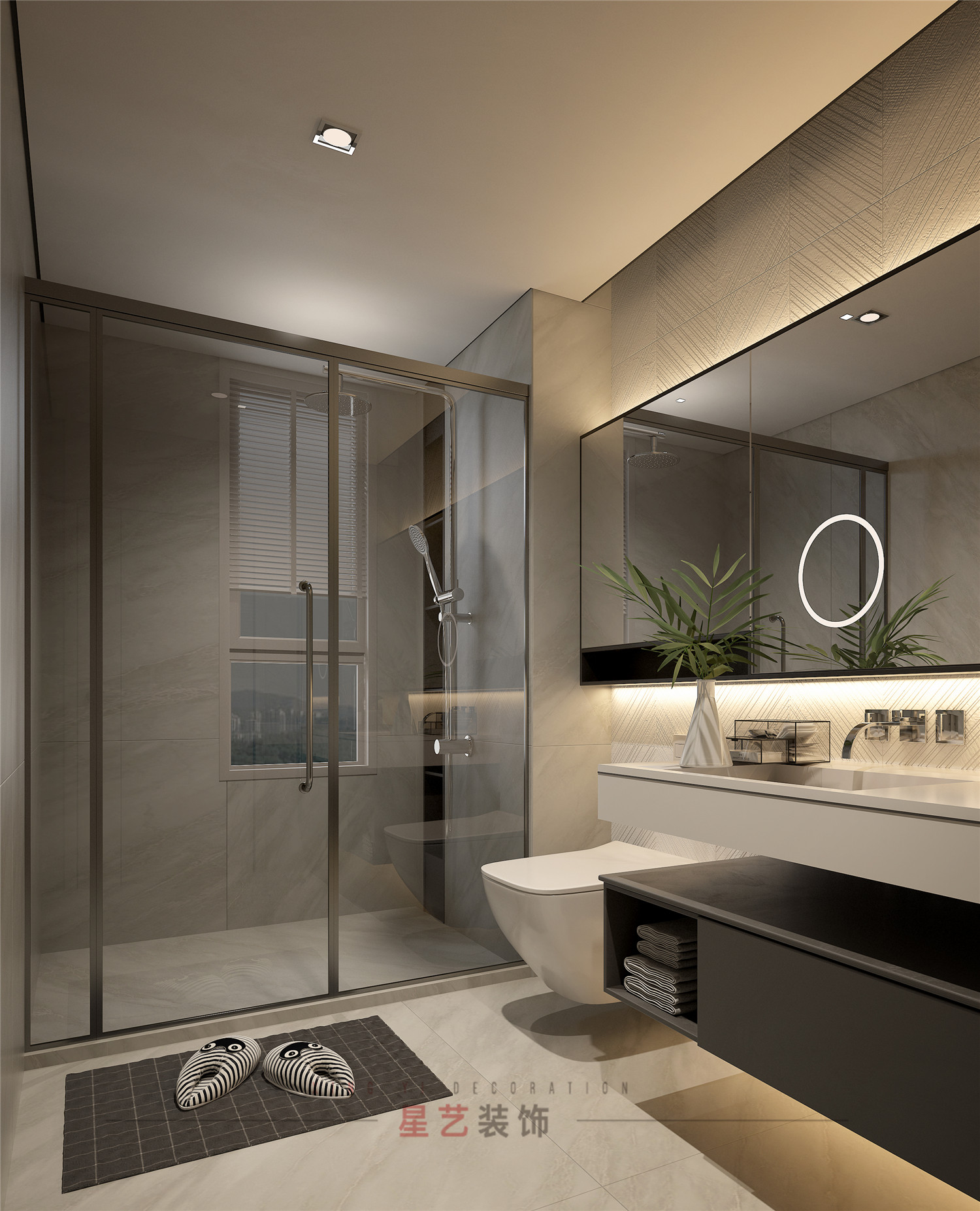 極簡線條的浴室柜更加流暢自然,筒燈與燈帶設(shè)計相結(jié)合,燈光效果別具一格。壁掛馬桶,顏值在線而且無衛(wèi)生死角,磨砂感瓷磚,壁掛浴室柜,每一件物品都是精挑細選,搭配起來氣質(zhì)和諧。
