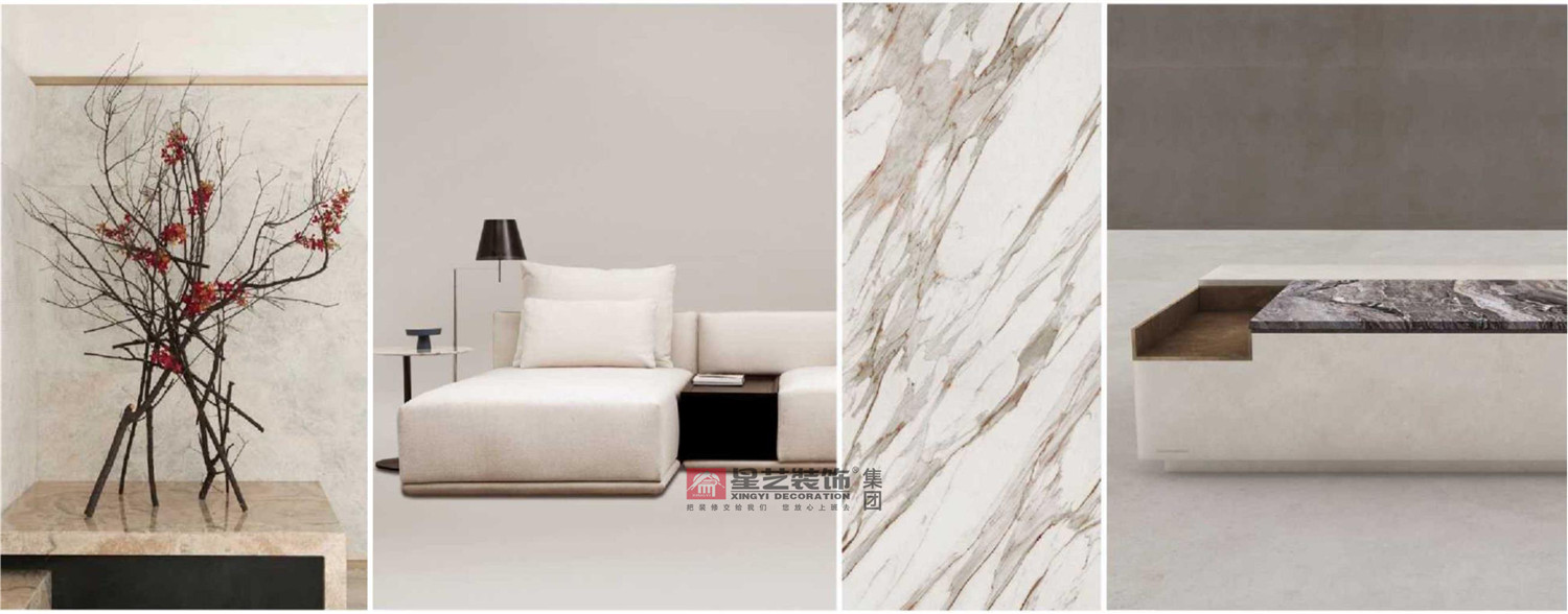 地面采用女主人喜歡的銀杏葉與祥云元素,配上隔斷屏風隔而不斷,即起到風水上的擋煞作用。并以石材原木與金屬為主要材質,把東方氣韻下的低調典雅呈現的淋漓盡致。